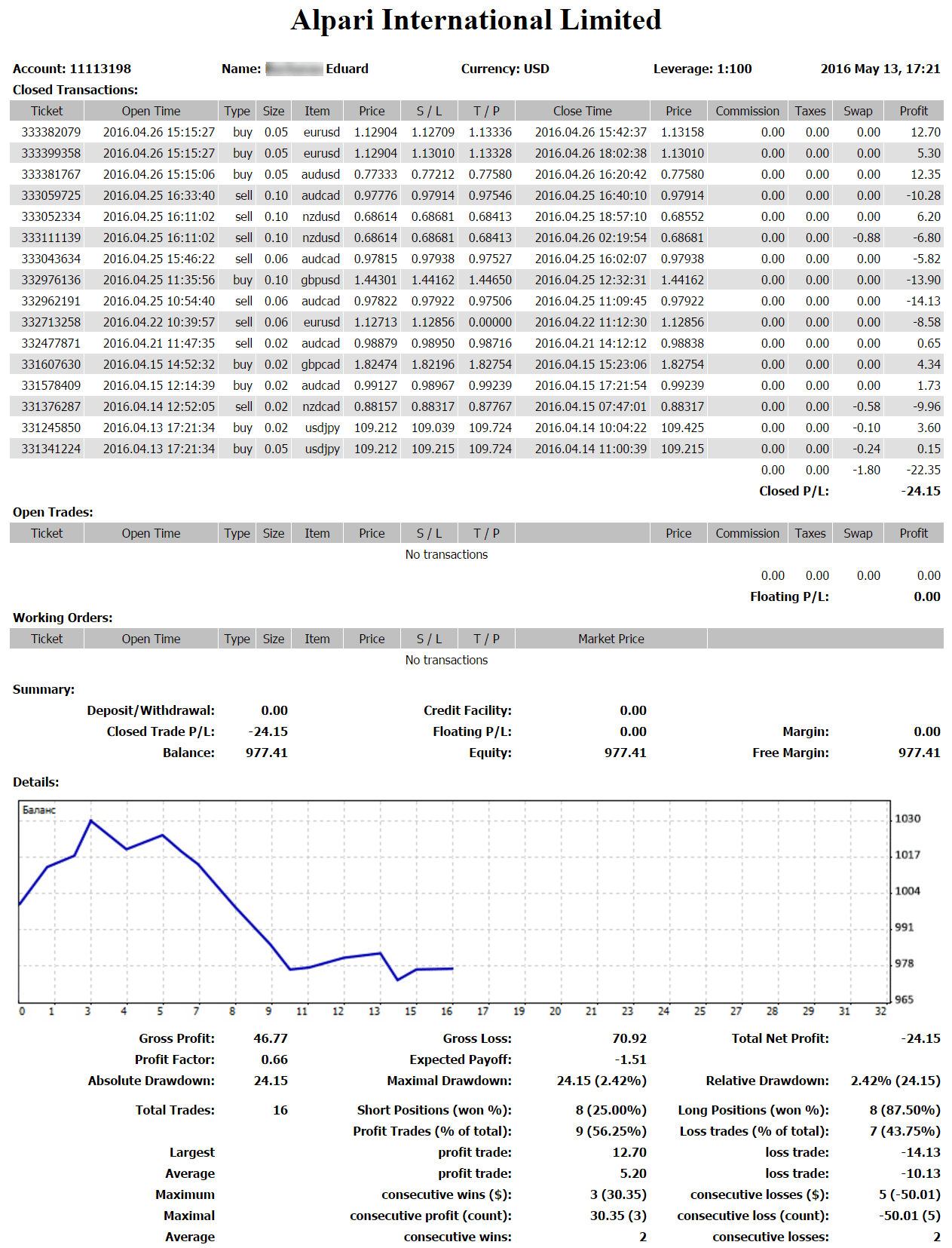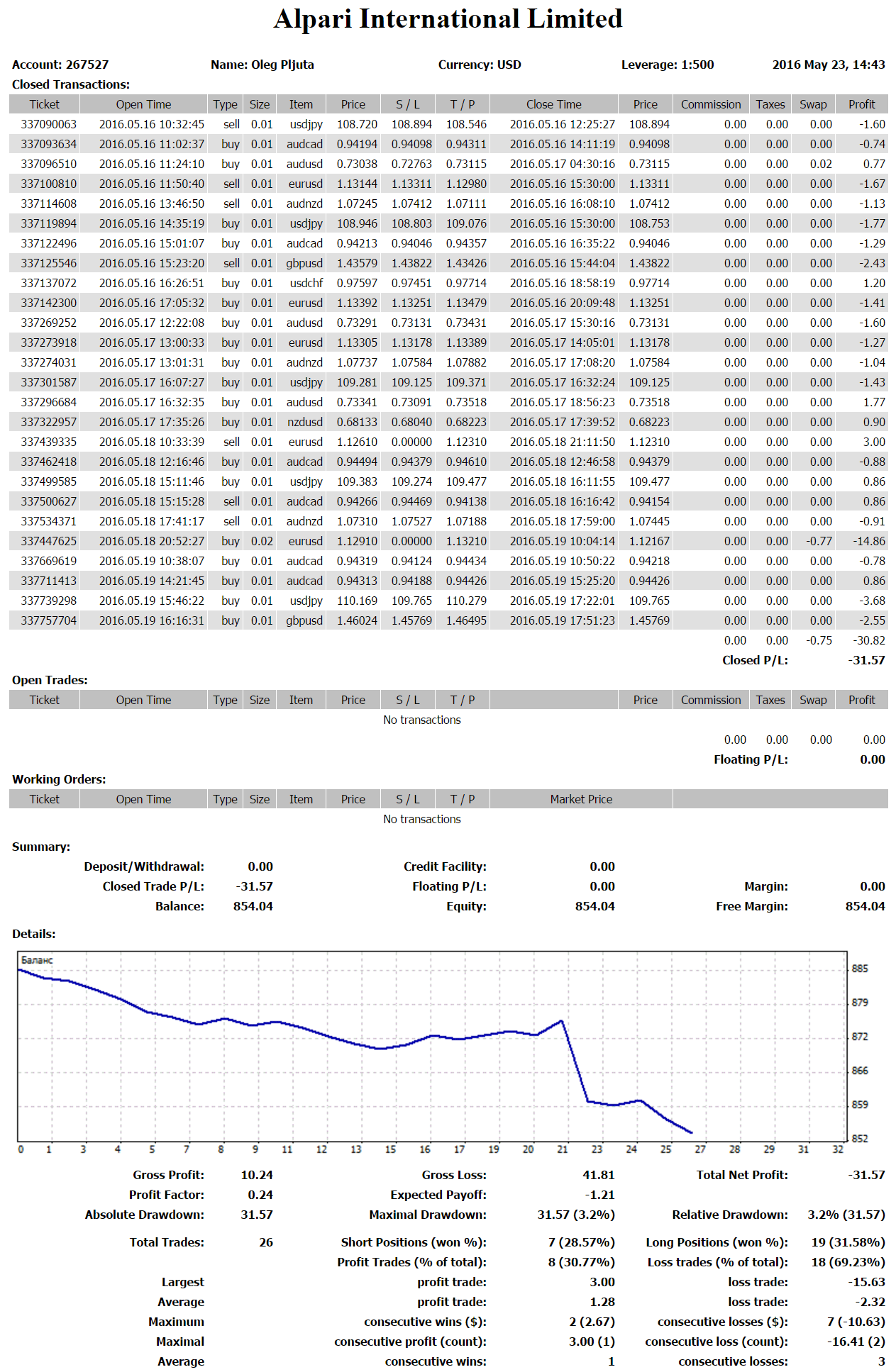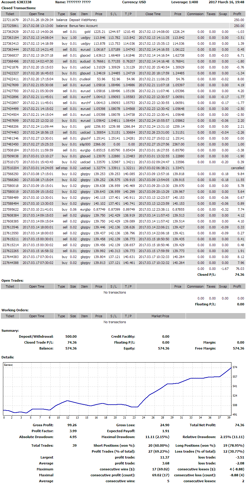 Как видите, я начинал свое обучение по «Снайперу» с депозитом в 200$. И уже на конец
