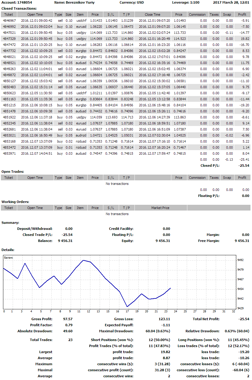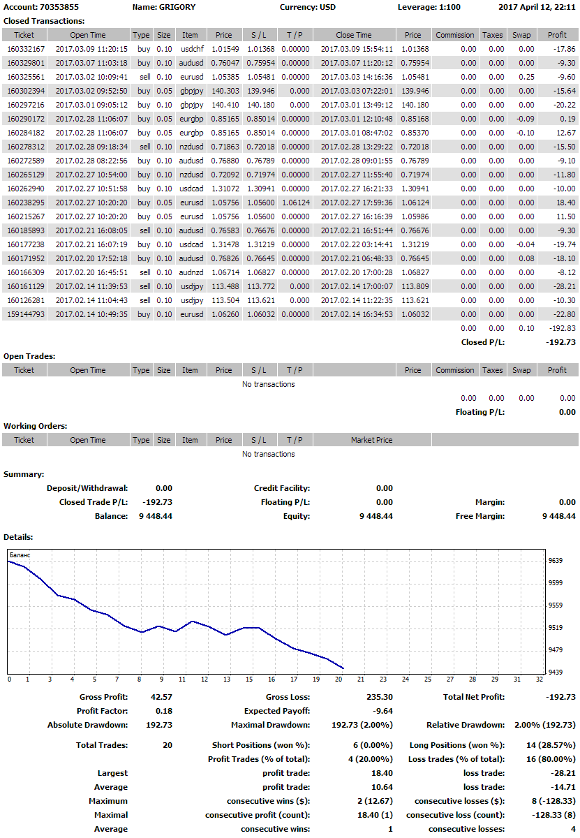положительного результата. Я просто не мог и не умел «читать» рынок.
